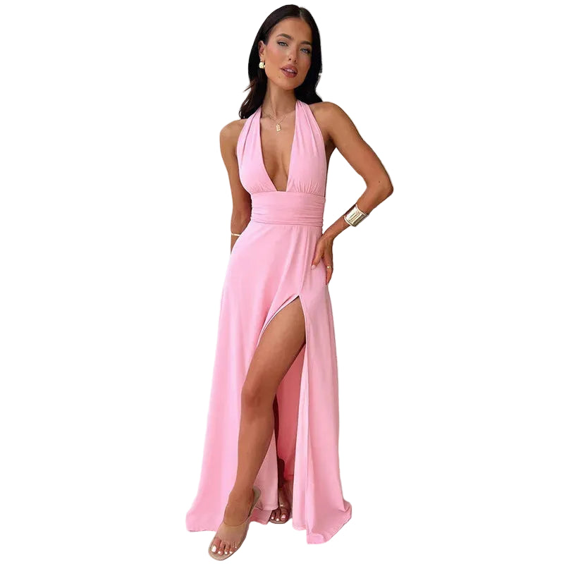 Women’s Halter Neck Maxi Dress with Open Back and Side Slit