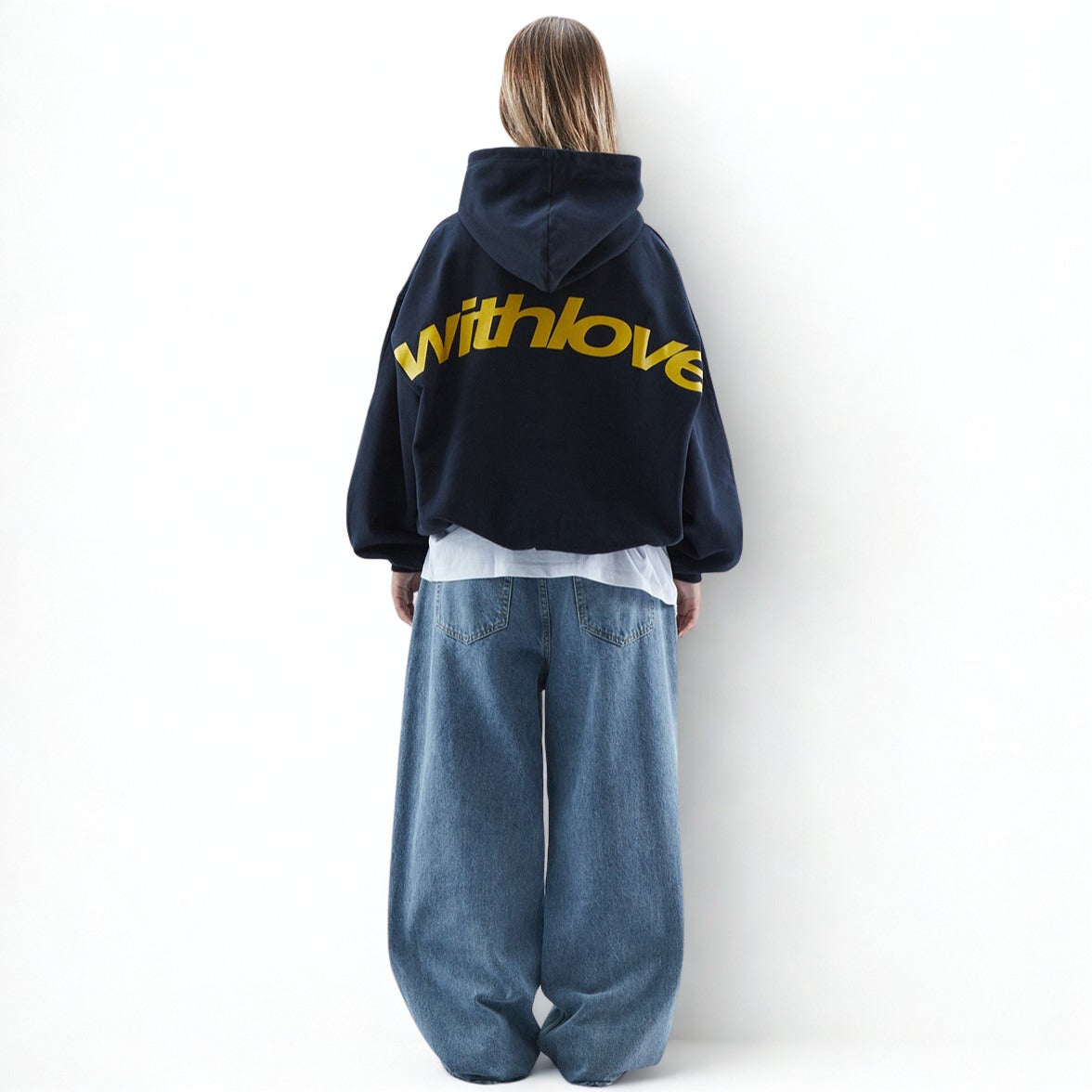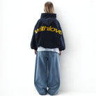Unisex hoodie with long sleeves and a hood. Features a large printed text design on the back. Includes a front kangaroo pocket. Finished with ribbed cuffs and hem.