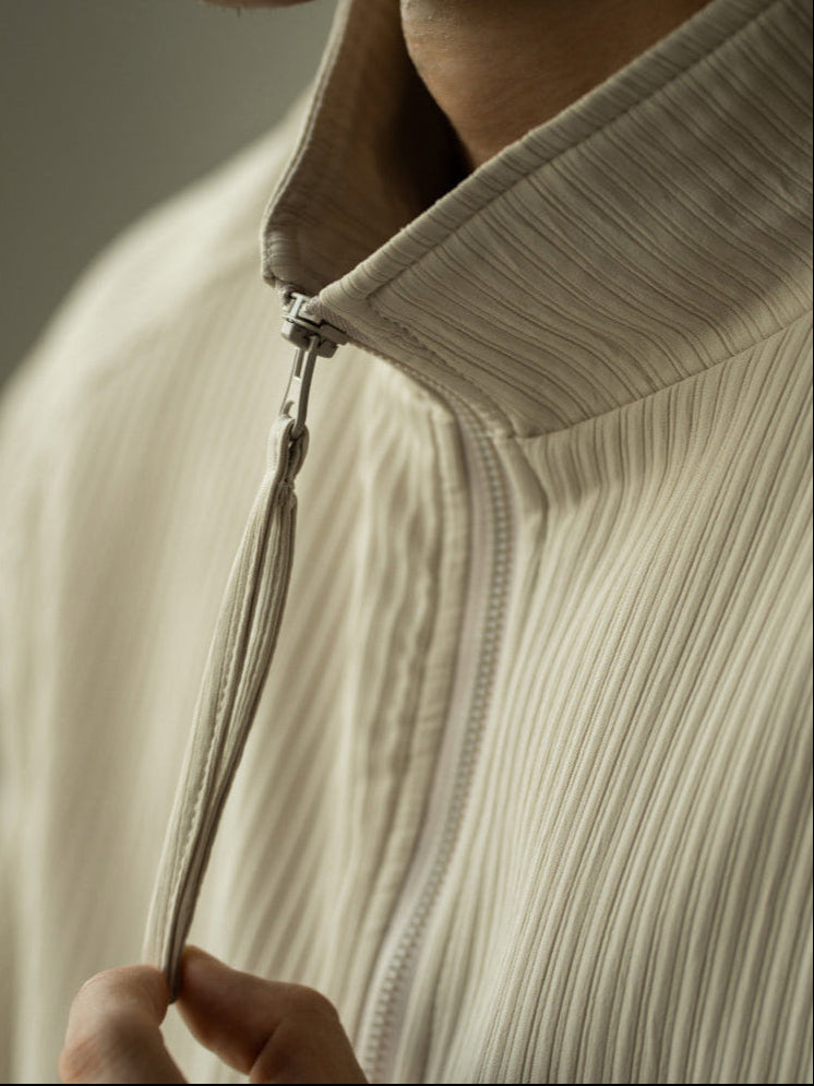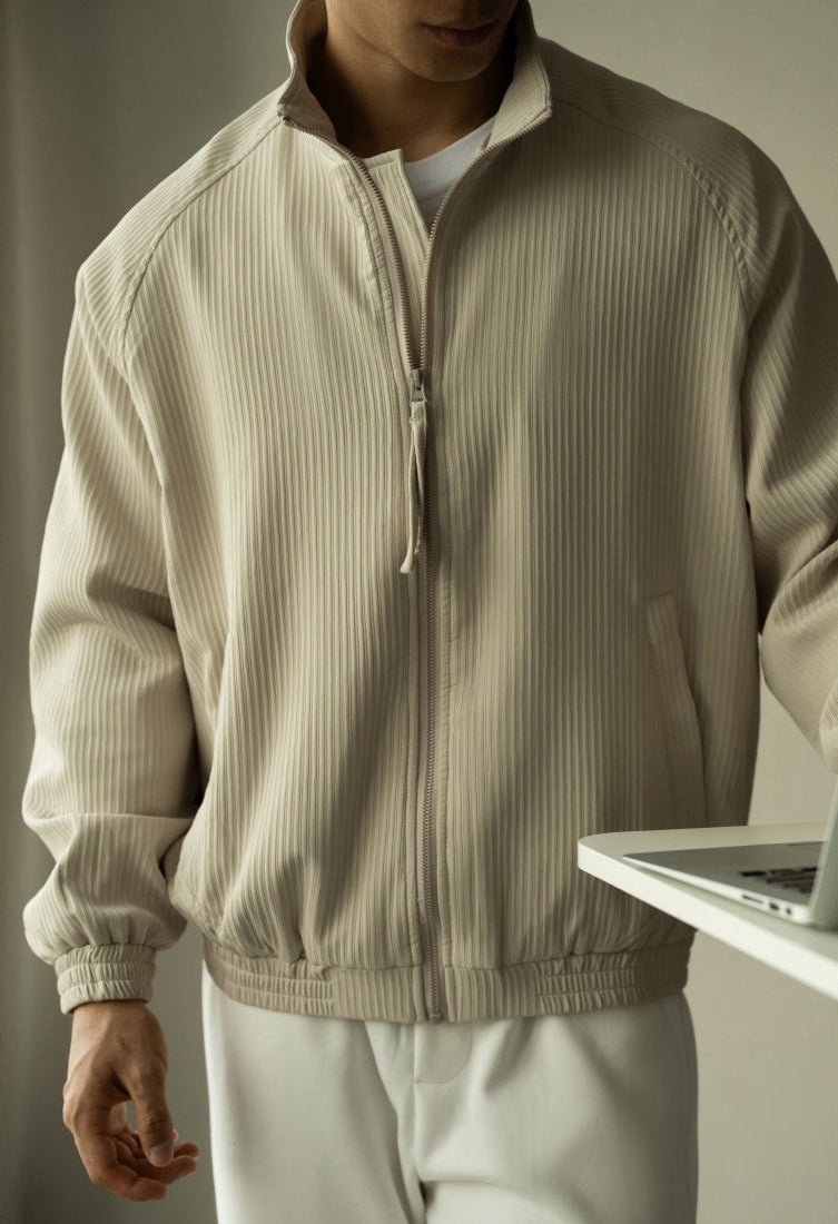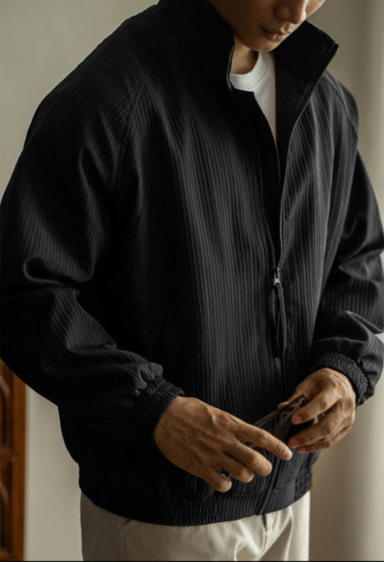Men’s Jacket with Ribbed Structure and Stand-Up Collar