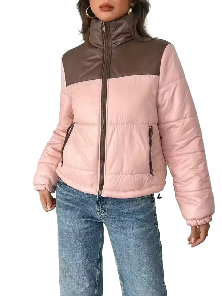 Women’s Colourblock Puffer Jacket with Stand-Up Collar