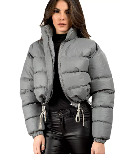 Women’s Cropped Puffer Jacket with High Collar and Zipper