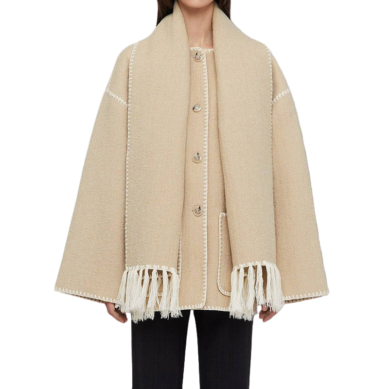 Women’s Long Coat with Fringe Detail