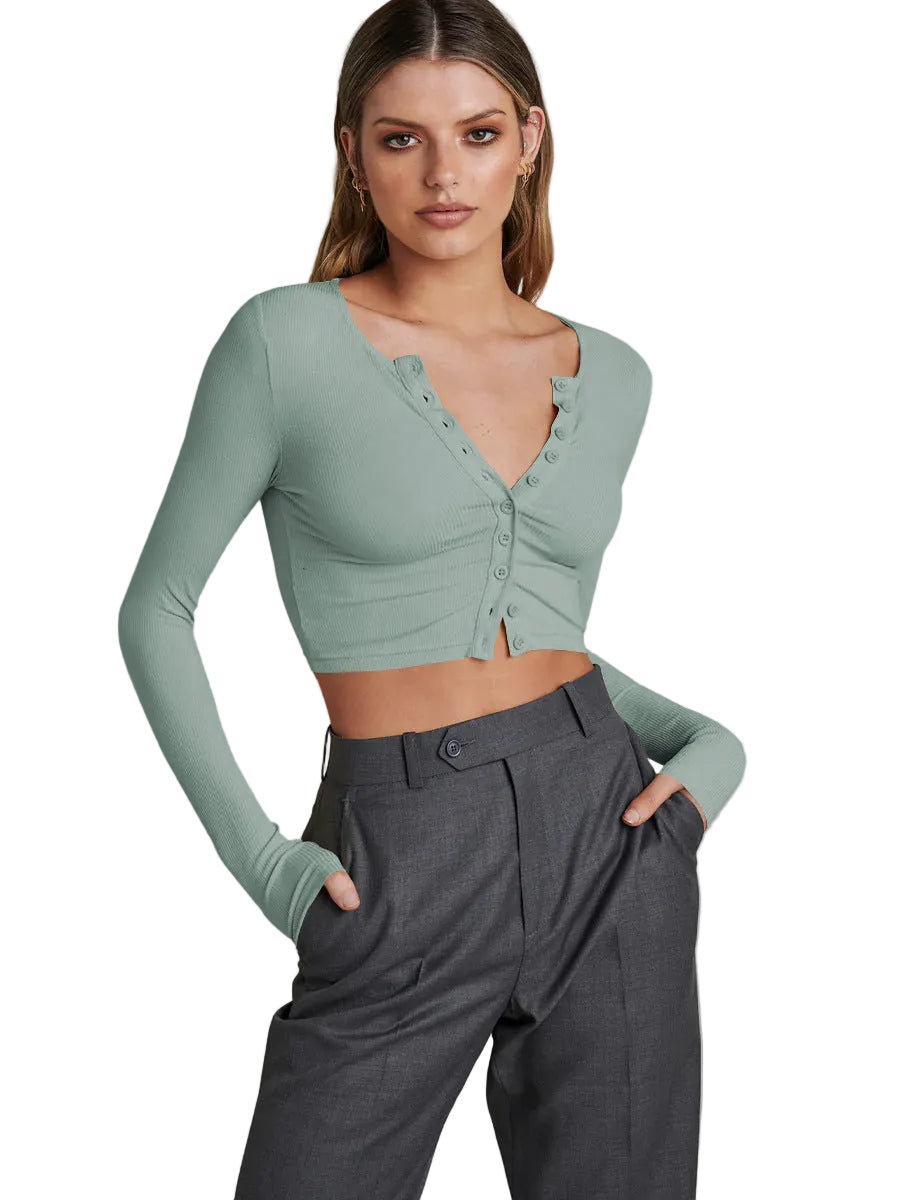Women's Cropped Cardigan with Long Sleeves and Buttons