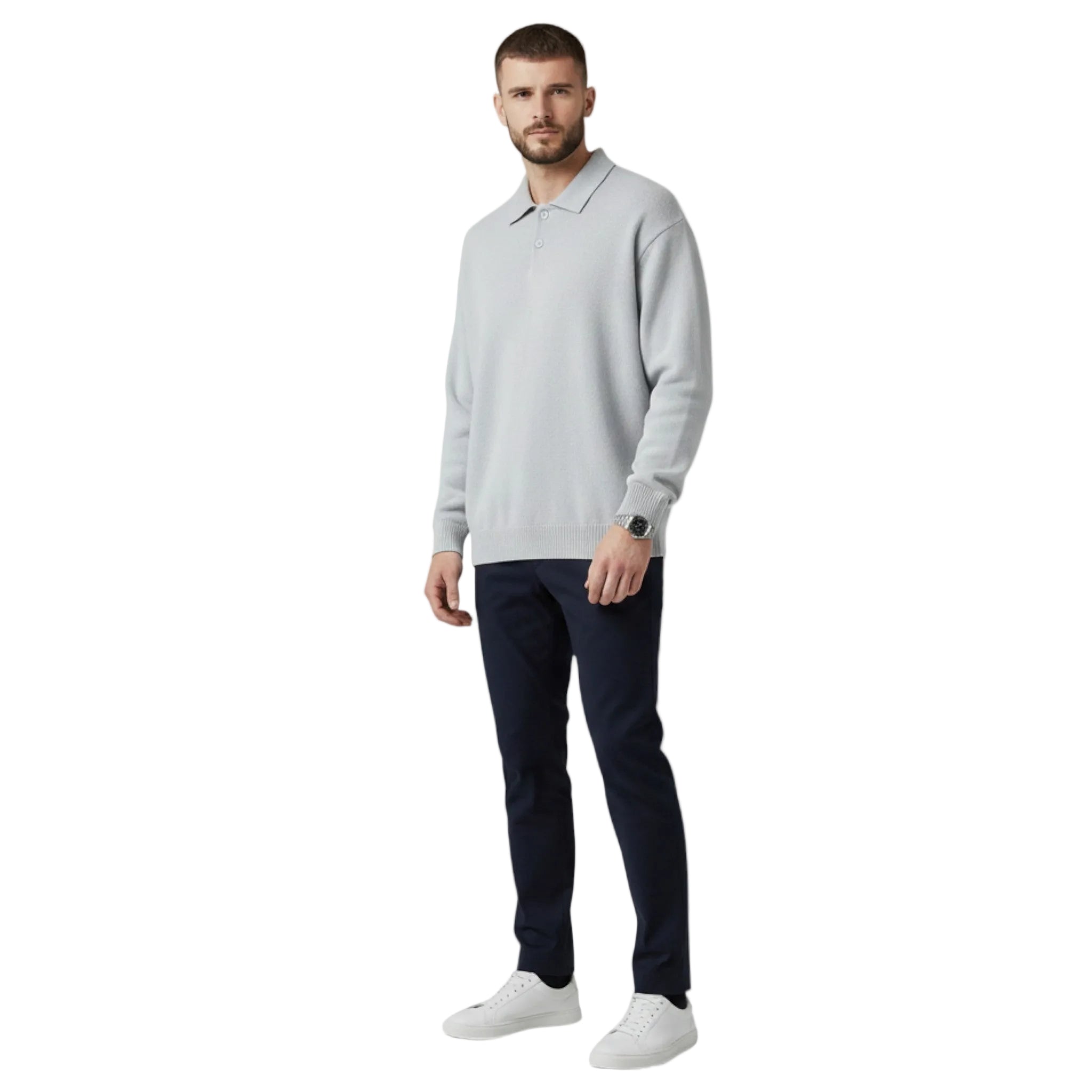 Men’s Polo Shirt with Long Sleeves and Ribbed Cuffs