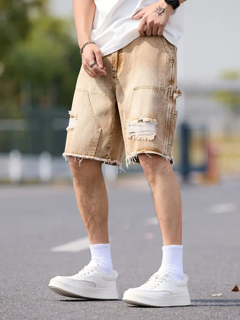 Men's Mid-Waist Ripped Shorts