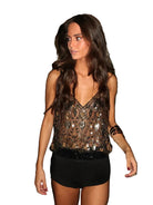 Women’s Sleeveless Sequin Top With V Neck And Thin Straps