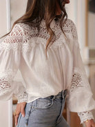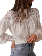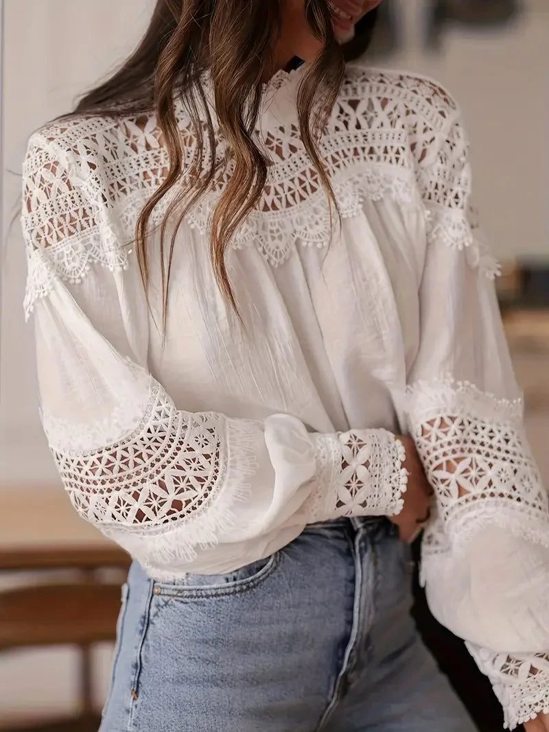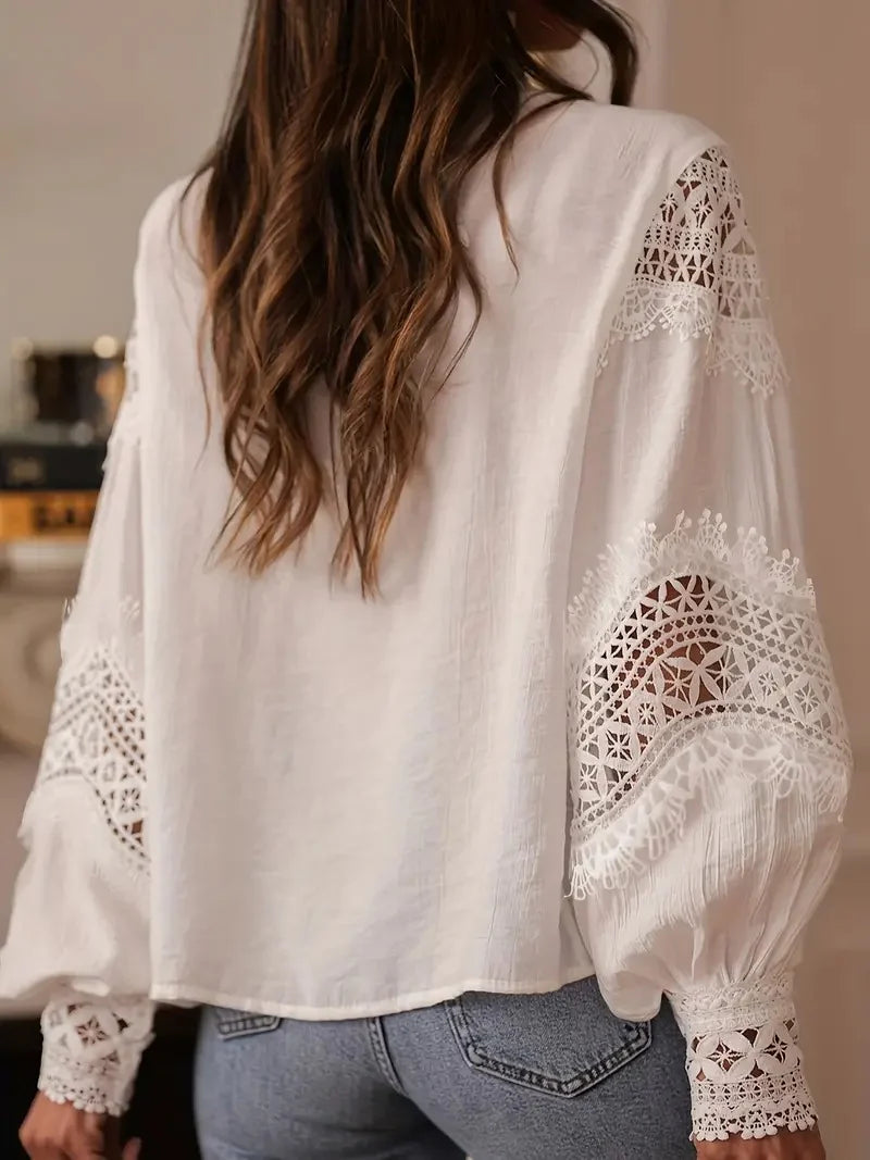 Women’s White Blouse with Long Sleeves and Lace Trim