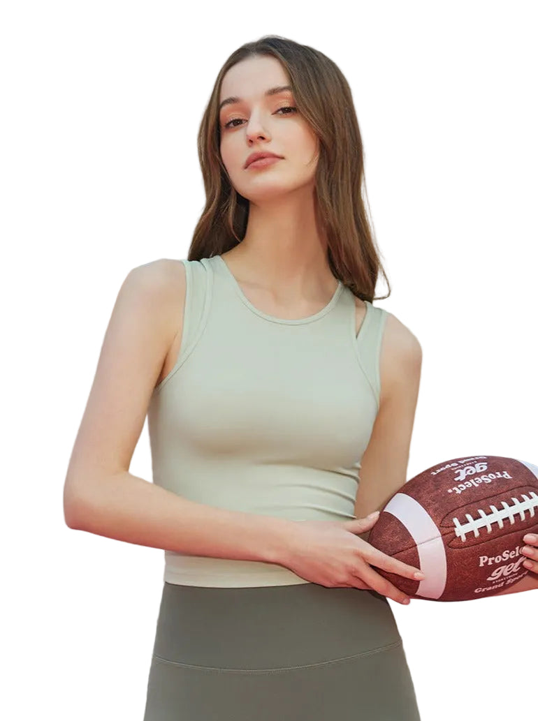 Women’s Sleeveless Sports Crop Top with Round Neckline