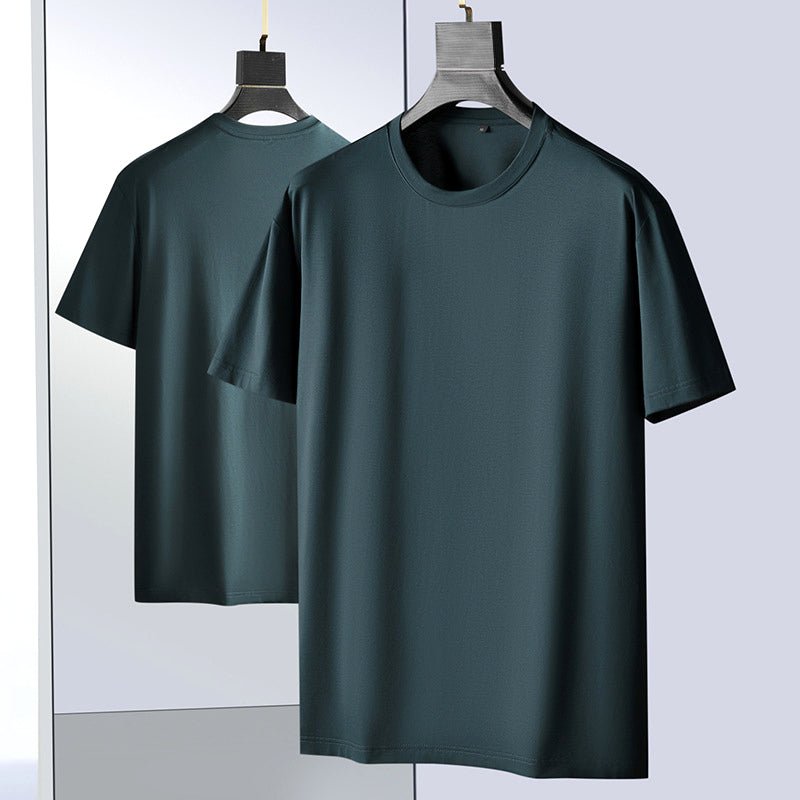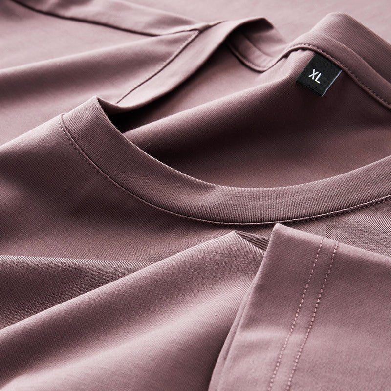 This men’s T-shirt features short sleeves and a round neckline. It has a straight cut and a plain front and back. Made from modal.